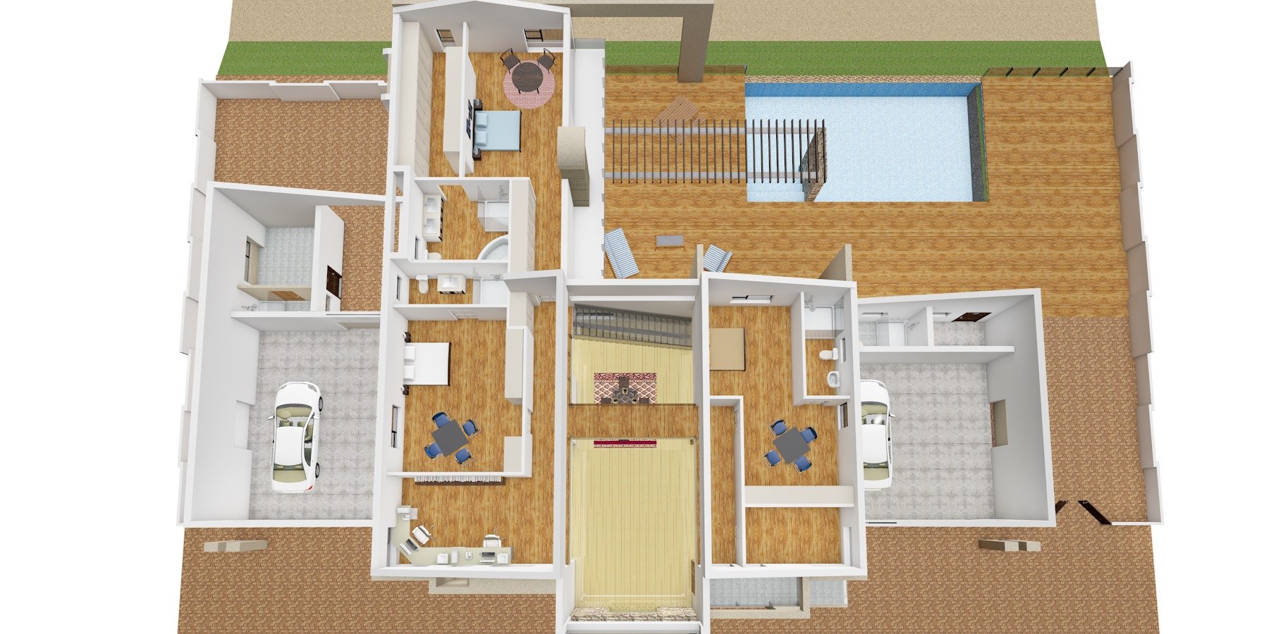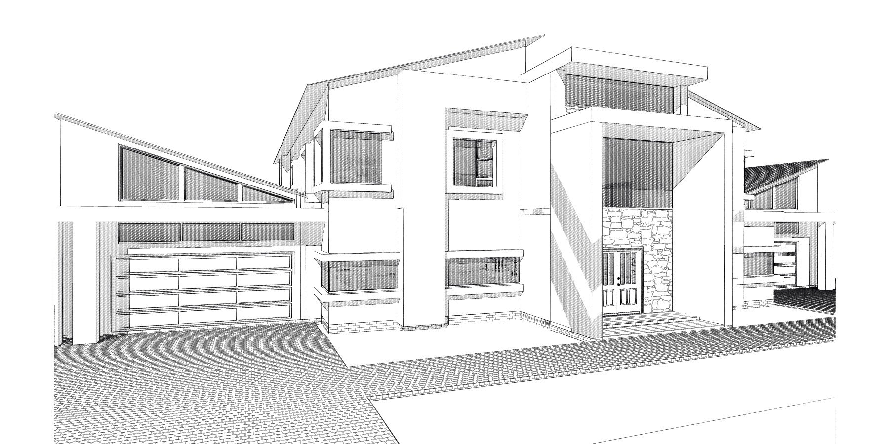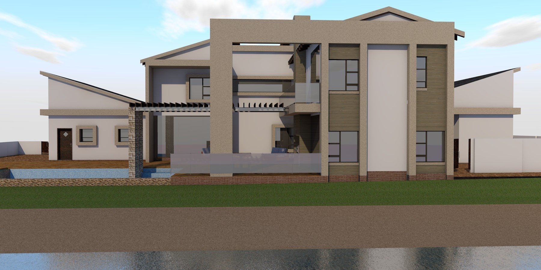 New modern style house designed with an open plan stile leading onto a infinity pool overlooking the lake